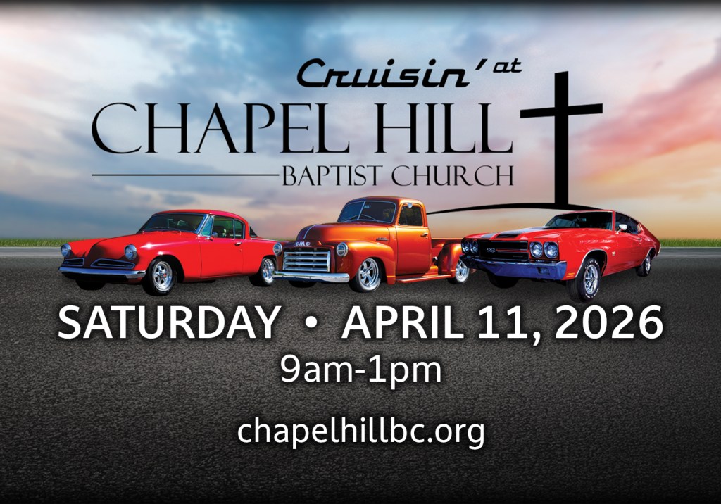 We will be playing at the “Cruisin’ at Chapel Hill” car show on April 11, 2026.